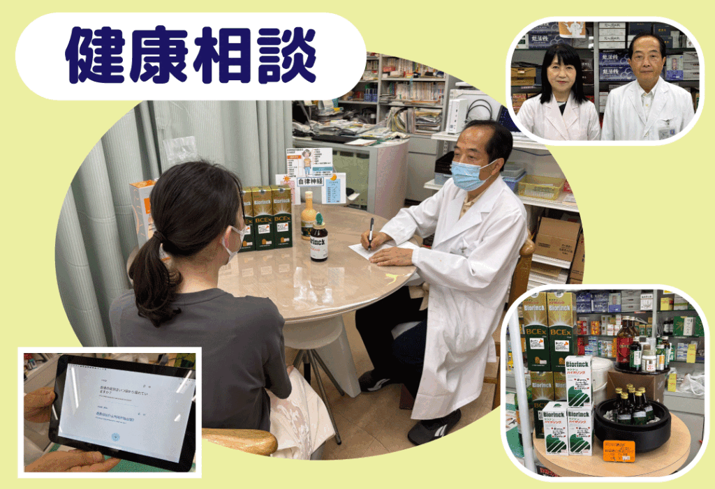 つらい症状やお悩みを解決するために対面でお客様一人ひとりにあったお薬をご提案するだけでなく、再び症状が発症しないよう、生活習慣の改善や養生法をお伝えしています。